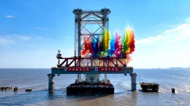 9月27日15時(shí),隨著“天一號(hào)”運(yùn)架一體船與巨力索具預(yù)制箱梁吊具將重達(dá)2800噸的新一代“世界梁王”在杭州灣海域順利架設(shè),世界最長(zhǎng)高速鐵路跨海大橋——杭州灣跨海鐵路大橋全面進(jìn)入架梁施工新階段,為后續(xù)大規(guī)模開(kāi)展海上架梁作業(yè)打下了堅(jiān)實(shí)基礎(chǔ)。