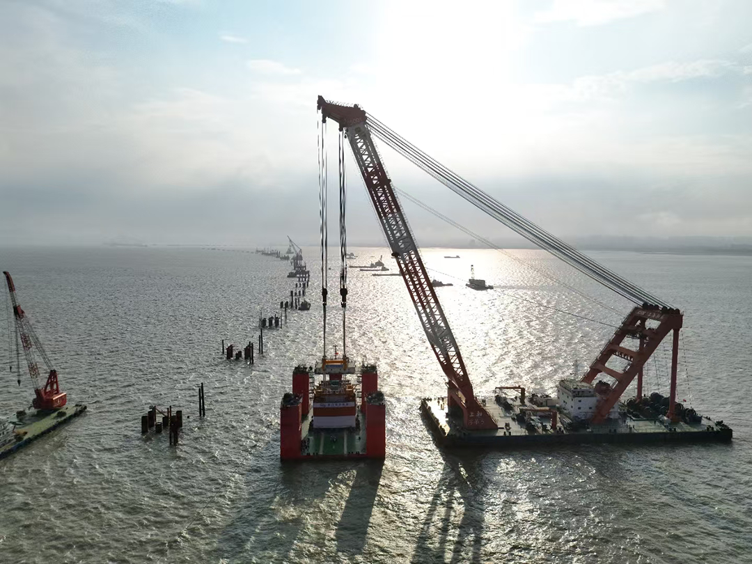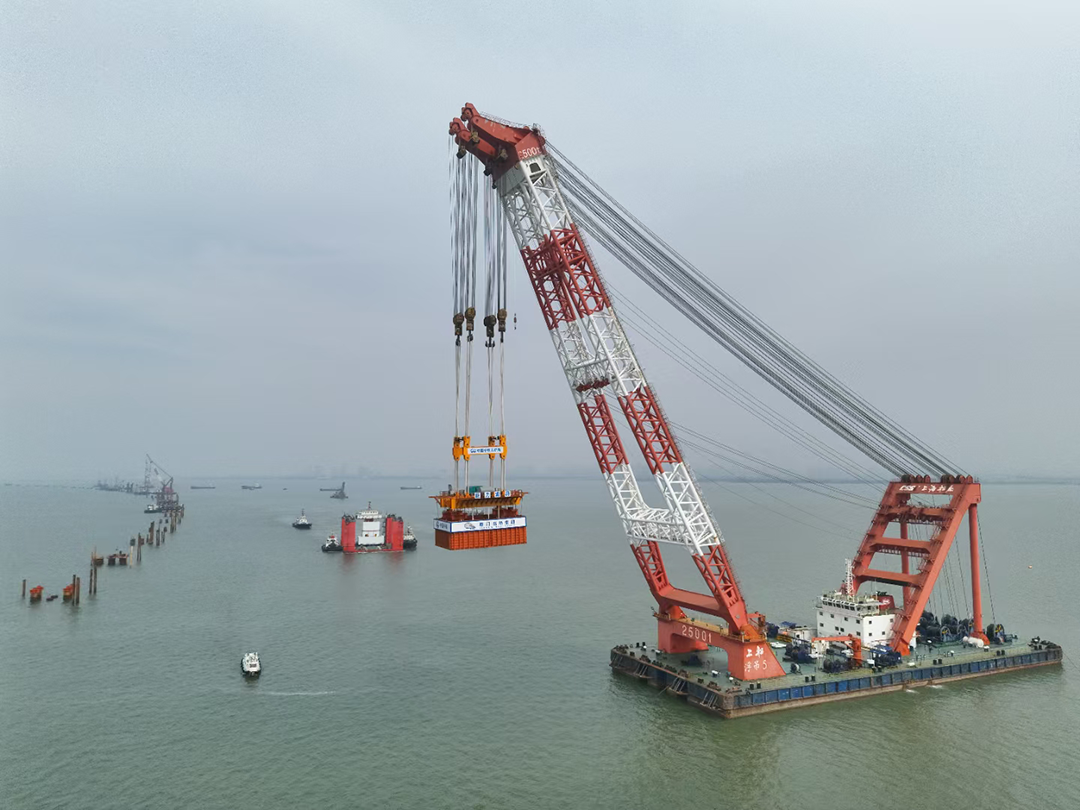 在項目建設及吊裝過程中,巨力索具工程項目團隊與總包單位齊心協力,共同打造生態施工標桿,采用“搭積木”式預制工藝,大幅減少海上作業時間達80%,在施工期間實現了對中華白海豚棲息地的零干擾。同時,項目部聯合海事部門構建起“海陸空”立體防護網,嚴格落實環保要求,實現廢水處理“零排放”,為海洋生態環境保護貢獻力量。