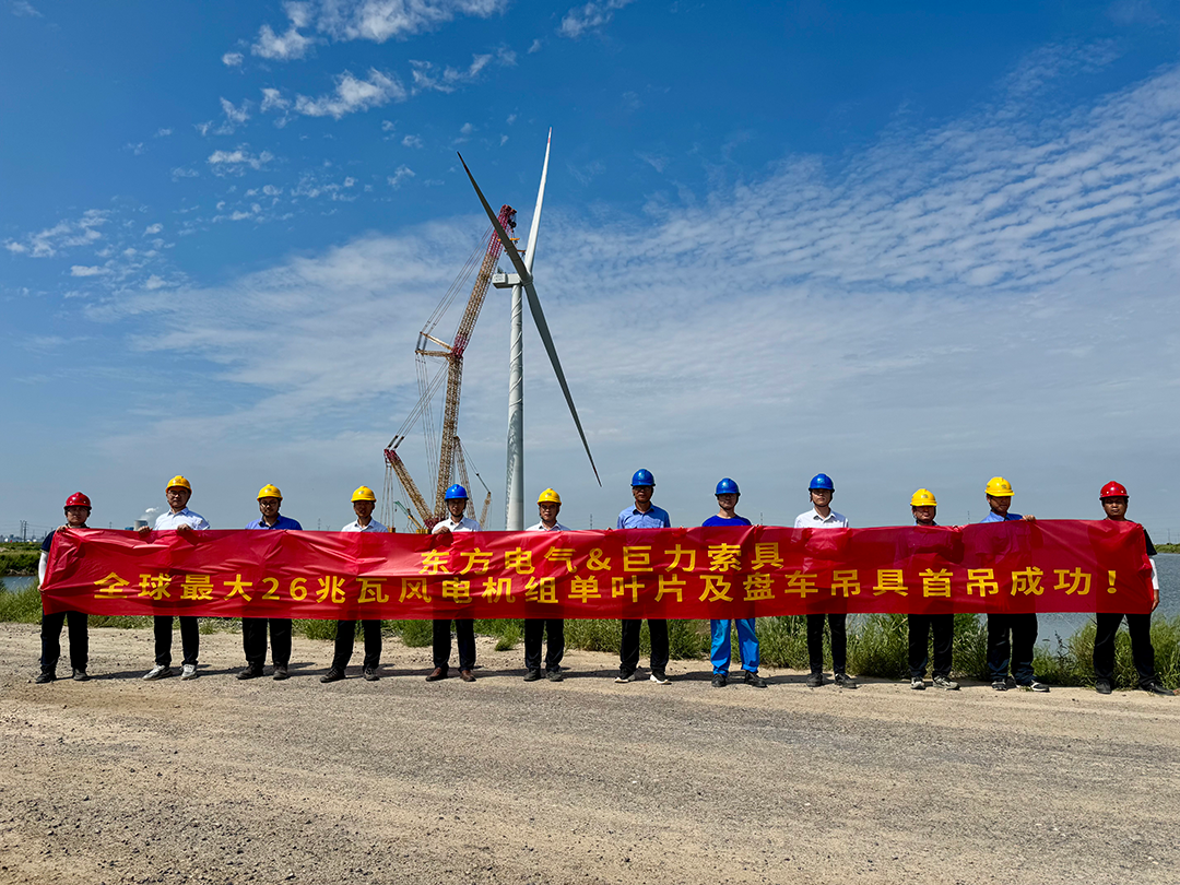 8月29日,由巨力索具股份有限公司為東方電氣風(fēng)電股份有限公司專項(xiàng)研制的26MW海上風(fēng)電機(jī)組用大噸位單葉片吊具及大扭矩盤車系統(tǒng),已于山東東營(yíng)風(fēng)電裝備測(cè)試認(rèn)證創(chuàng)新基地成功完成吊裝作業(yè)。這是目前國(guó)內(nèi)外最大兆瓦海上風(fēng)電機(jī)組葉片吊裝的優(yōu)異解決方案,創(chuàng)新型解決了最大葉片的吊裝難題。