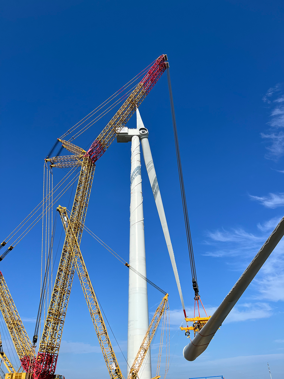 此次吊裝的26兆瓦級(jí)海上風(fēng)電機(jī)組由超過3萬個(gè)零部件構(gòu)成,輪轂中心高度相當(dāng)于50多層居民樓高,其風(fēng)輪掃風(fēng)面積達(dá)7.7萬平方米,相當(dāng)于10.5個(gè)標(biāo)準(zhǔn)足球場(chǎng),是目前全球單機(jī)容量最大、葉輪直徑最長(zhǎng)的海上風(fēng)電機(jī)組,并且實(shí)現(xiàn)全國(guó)產(chǎn)化設(shè)計(jì)制造。