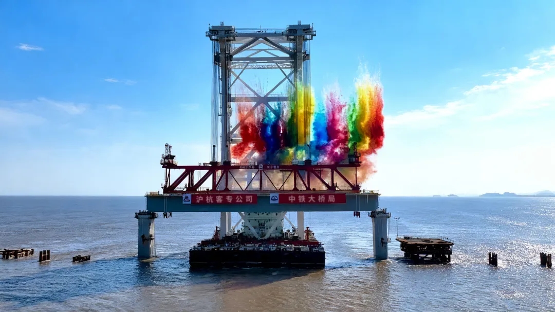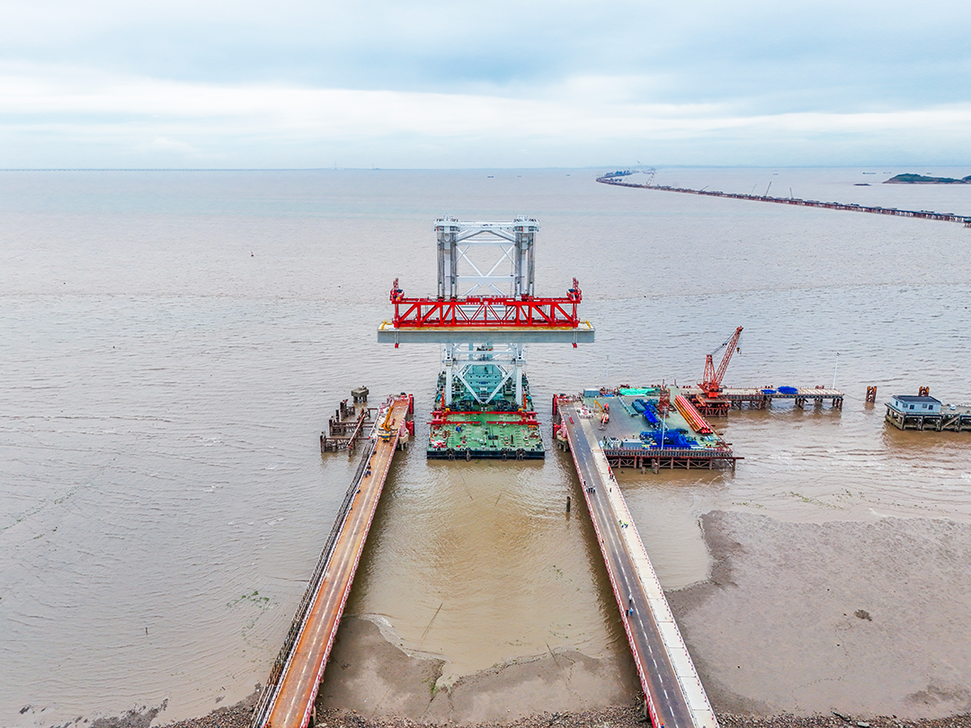 2800噸“世界梁王”!巨力索具助力杭州灣跨海鐵路大橋首孔80米箱梁架設到位