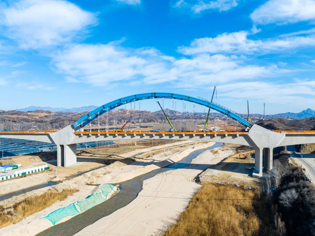 雄忻高鐵跨胭脂河特大橋位于河北省保定市阜平縣,全長3748.9米,其中連續剛構拱主跨達168米,梁體共為83個節段,是雄忻高鐵河北段跨度最大、結構最復雜的連續剛構拱橋。