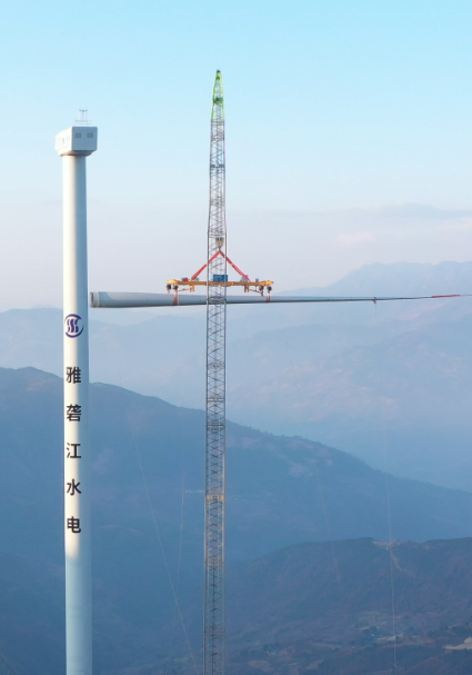 國投集團雅礱江水電臘巴山風電項目采用巨力索具單葉片吊具,在百米高空順利完成精準對接,這是四川省內首個成功實現單葉片吊裝的風電項目。