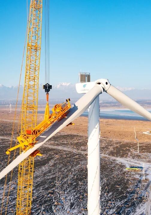 巨力索具研發的6MW大角度斜插單葉片吊具在新疆烏魯木齊金風天翼20MW風電項目場順利完成吊裝工作。
